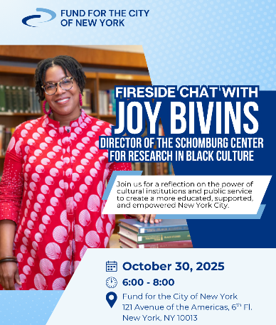 The Fund for the City of New York is proud to host a special fireside chat Joy L. Bivins, Director of the Schomburg Center for Research in Black Culture.